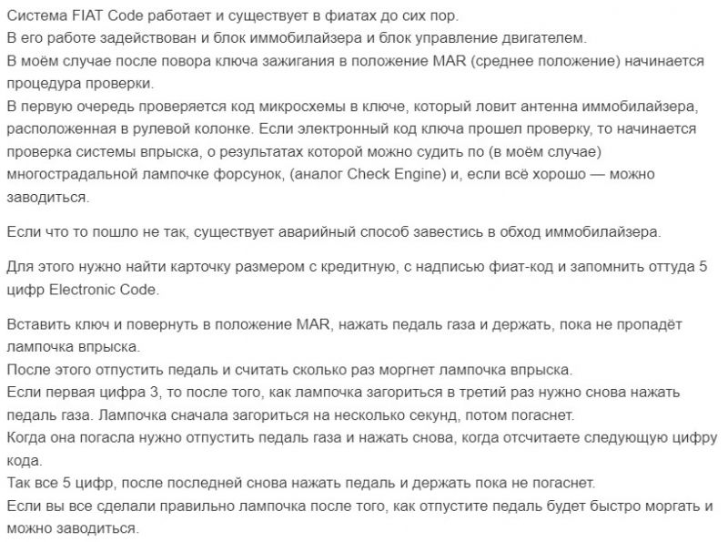 При этом сигнализаторе срабаывает иммобилайзер. Вообще у Фиатов это случается, когда пропадает контакт массы, либо блок предохранителей заливает.