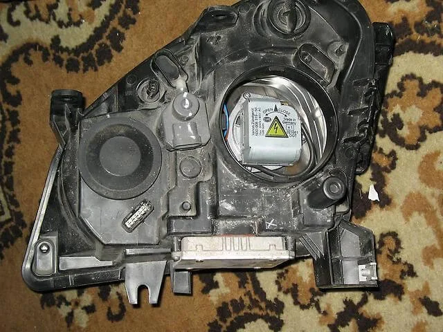 Фото случайное. Вокруг белой фиговины три самореза видите? Выкручиваете их и блок линзы должен вылезти.