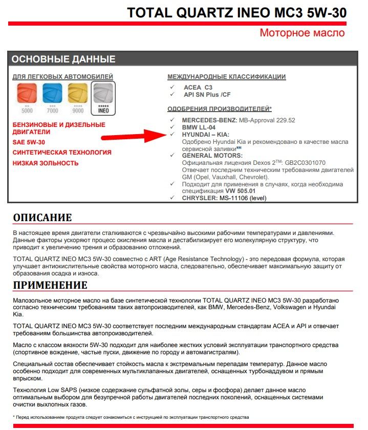 У масла TOTAL QUARTZ INEO MC3 5W-30 классификация SN и одобрено Kia, должно быть получше, но лучше предварительно тесты поискать.