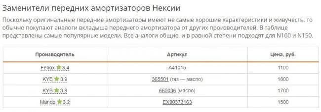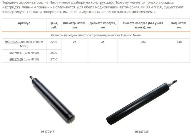 Какие амортизаторы передние на Нексии?