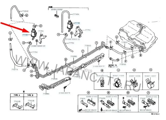 Каким образом осуществляется вентиляция топливного бака (есть ли адсорбер) в автомобиле Тойота Карина АТ-170, 1991 г.в., двигатель 5A-FE?