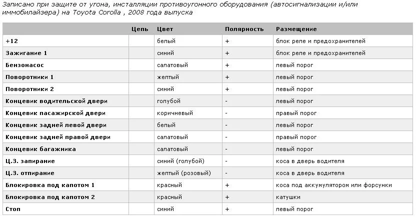 Добрый день. Авто toyota Corolla 2012 г.в. 1.6 АТ. Какую цепь блокировать при установке сигнализации?(желательно под капотом, и чтоб в ЭБУ не высвечивалась ошибка) возможна и 2 цепи блокировать.