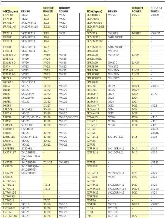 А также будет полезна эта таблица взаимозаменяемости свечей NGK свечами DENSO.