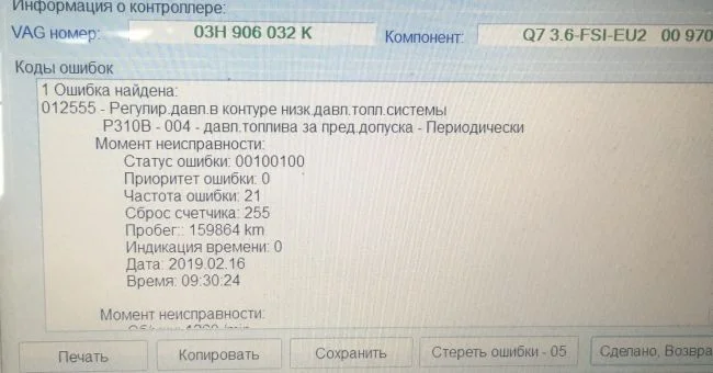012555 регулирование давление в контуре низкое давление системы. Р310В-004 давление топлива за пределами допуска-периодически.