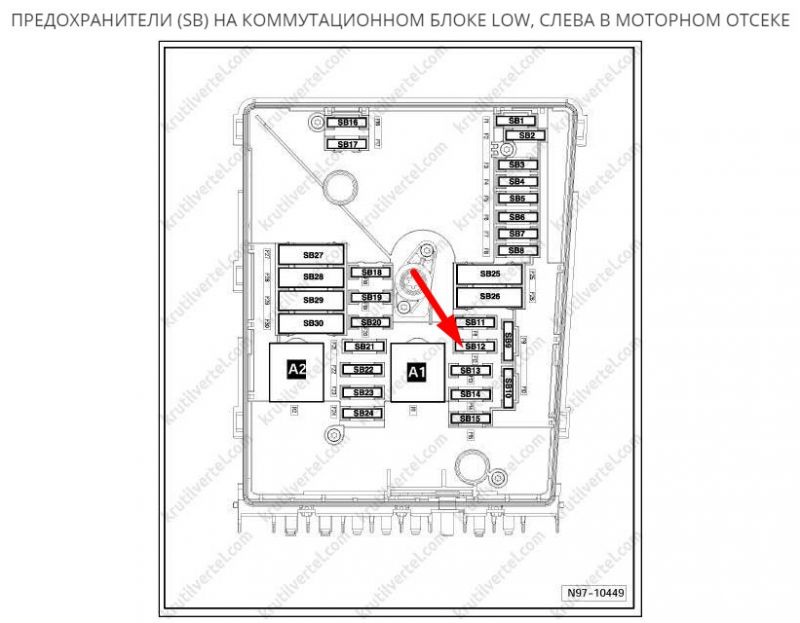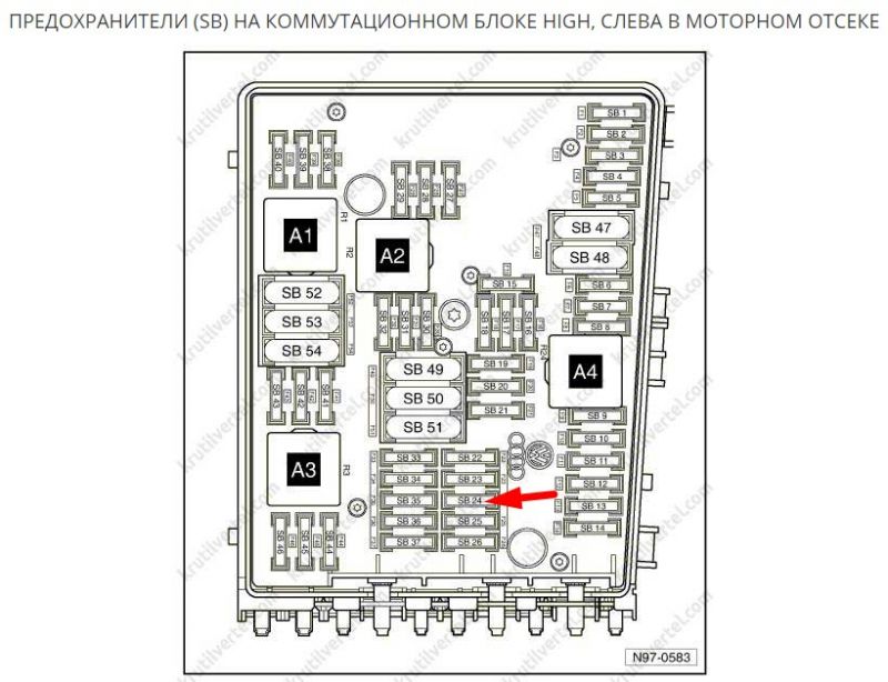 Какой номер предохранителя задних противотуманных фонарей Фольксваген Туран 2?