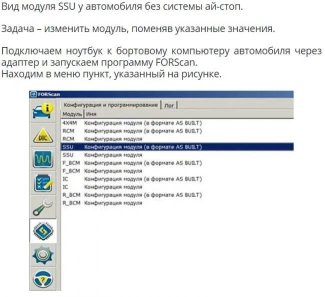 Вид модуля SSU у автомобиля с системой ай-стоп.