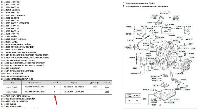 Сколько магнитов в АКПП Киа Сид?