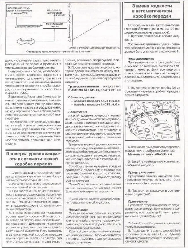 Масло примерно заливаете столько же, сколько и вытекло, НО потом обязательно проверить уровень щупом и при необходимости долить масло. Масло лучше заливать Mitsubishi Diamond SP III. Для частичной замены требуется примерно 4-5 литров масла (если со снятием поддона), если вы будете проводить две частичные замены через небольшой интервал, то фильтр акпп лучше заменить при второй замене масла.