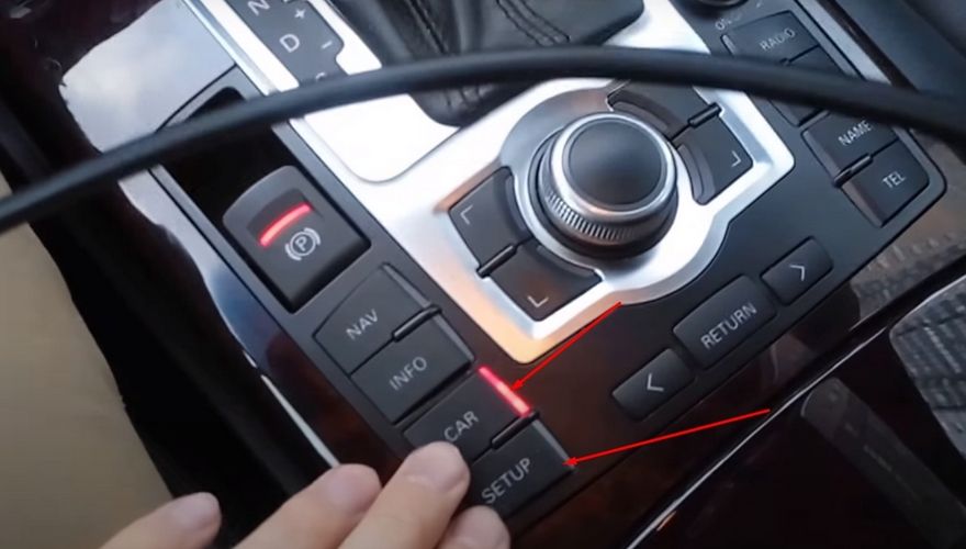 Для того что бы настроить часы на Audi Q7, нужно проверить есть ли активация инженерного меню (зеленого меню). Для проверки зажмите кнопки Setup и Сar. Если меню активировано, то вы попадете в него.