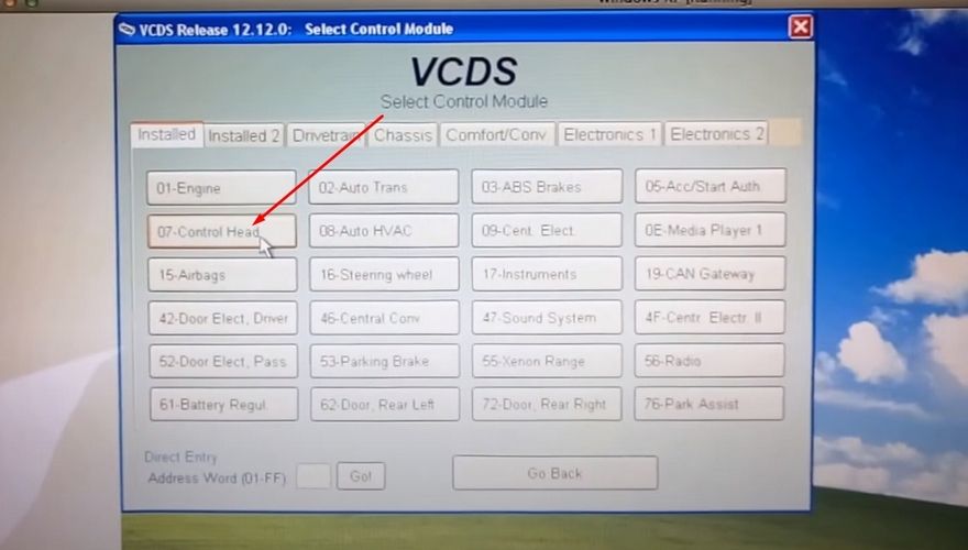 Зайдите в пункт меню “07 — Control Head”.
