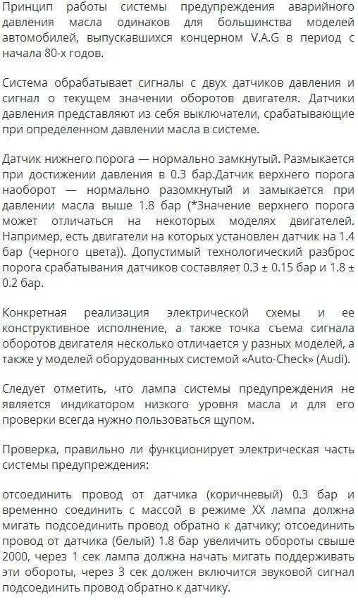 Загорается авариный сигнализатор давления масла свыше 2000 оборотов на Ауди 100