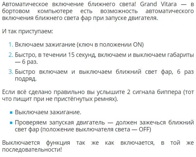 Как отключить автовключение фар Сузуки Гранд Витара 3?