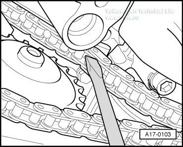 Отжать приводную цепь с помощью отвертки вверх.
