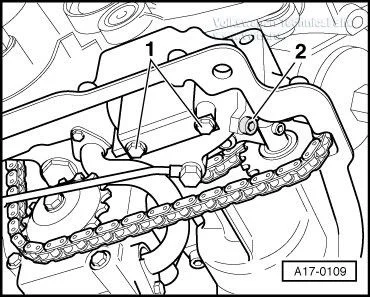 Немного выкрутить болт «1» звездочки на масляном насосе, но не выкручивать совсем.