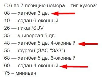 Вот есть какие данные по артикулам. BASE, LS, LT — это комплектация. 69, 08, 48 — это тип кузова. 08 — хэтчбек 3 дверный; 48 — хэтчбек 5 дверный (4-оконный); 69 — седан (4-оконный).