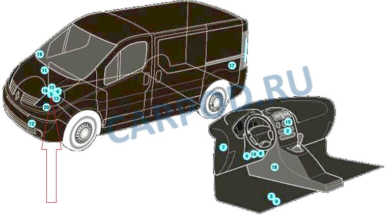 Где блок ЭБУ в Опель Виваро Б?