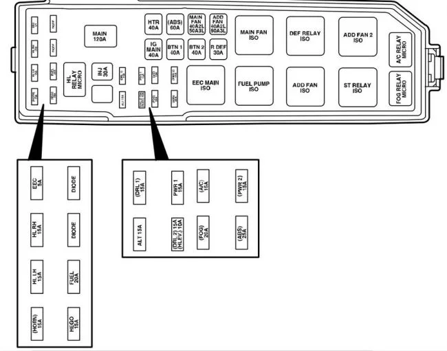 Здравствуйте! Форд Маверик VIN: VSKDXXWGUDRT18266 1994 г. При выключенном зажигании что-то садит аккумулятор. Под капотом с право есть блок реле, а в нем стоят два предохранителя. Когда их вытягиваешь прибор показывает норму потребления. Не найти в схемах эти предохранители. Подскажите за что они отвечают, а если есть схема пришлите ссылку. Спасибо!