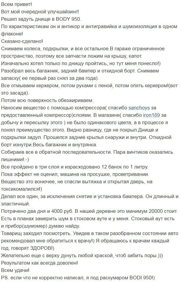Как наносится "Body 950 защита днища"?