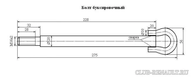 Какой размер буксировочного крюка для Рено Кенго 2?