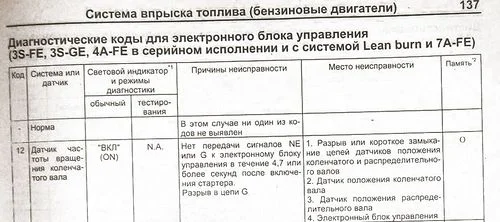 Ошибка 12 в Тойота Карина 6
