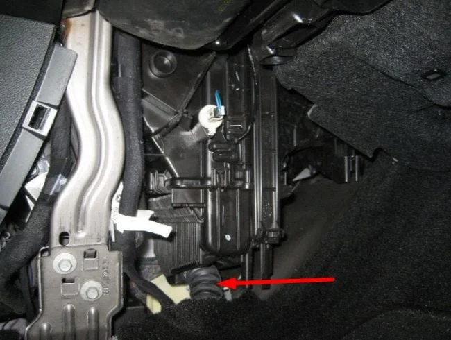 Машине 2,5 года. Появился запах в вентиляции, салонный фильтр меняется ежегодно. Как забросить пену в испаритель через дренажную систему из салона? Ни схем, ни нормальных описаний нет в продаже. Дилеры хранят молчание. Хоть бы одно фото с указанием как войти в дренажную трубку из салона. Спасибо.