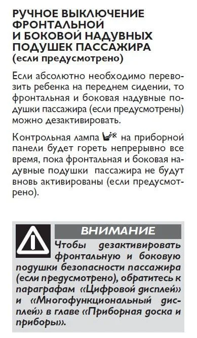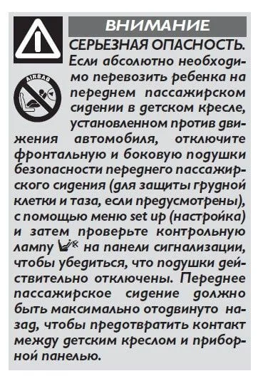 Значит отключена подушка безопасности пассажира и боковая подушка, вот выдержки из руководства
