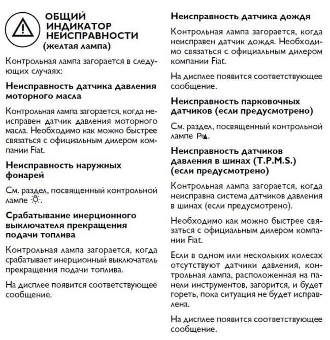 Что обозначает значок на панели приборов Фиат Гранде Пунто?