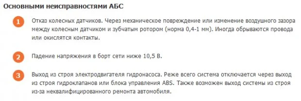 При этом не нужно паниковать, поскольку обычное торможение является возможным. Дабы разобраться, что именно за поломка в АБС, нужна диагностика.