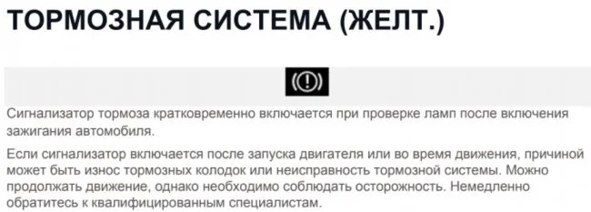 Третий значок говорит об активировании тормозов (о том, что колёса заторможены).