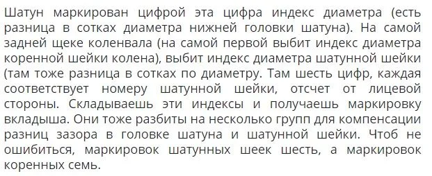 Цифры и буквы на нижней шейке шатуна означают индекс нижней головки шатуна.