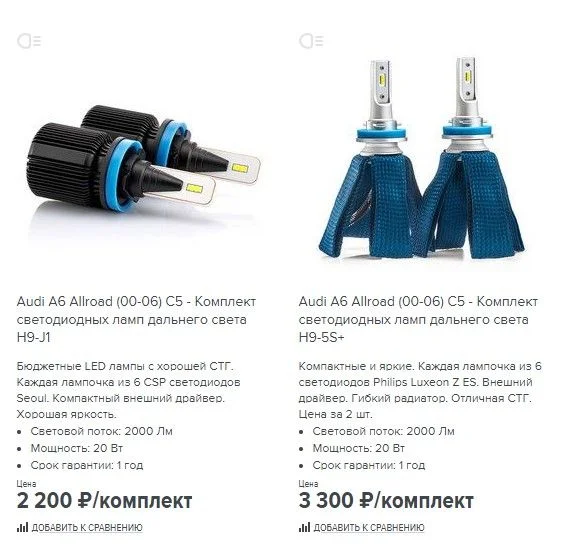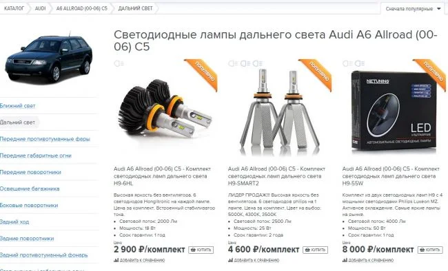 Какие лед лампочки на дальний свет Ауди А6 Олроуд С5?