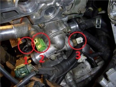 Датчик 1: показания на щиток приборов, датчик 2: показания для ЭБУ, датчик 3: включение вентилятора радиатора.