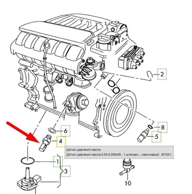 Датчик давления масла в Фольксваген Туарег, где установлен второй датчик?