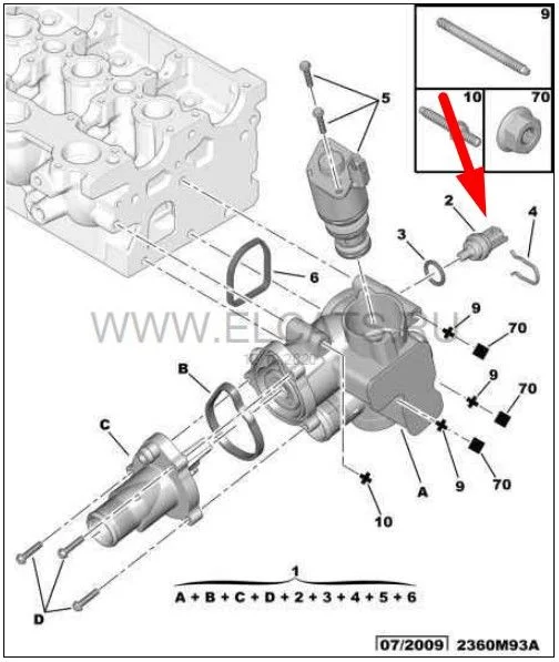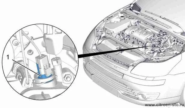 Где датчик температуры ОЖ в Ситроен С5?