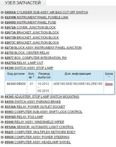 SB1ME4JE60E008390 Тойота Аурис 2013 г. Не могу найти артикул датчика педали тормоза. Помогите.