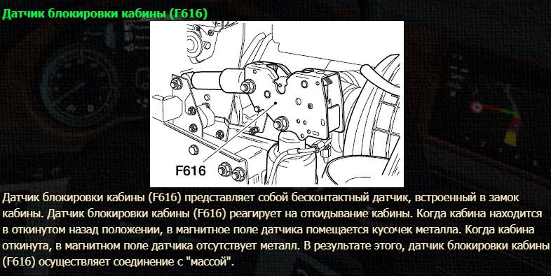Как проверить датчик подъема кабины, пищит в ДАФ ХФ?