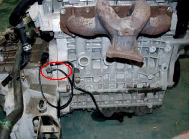 Здравствуйте! Где находится датчик положения коленвала Чери Фора на картинке? Пожалуйста!