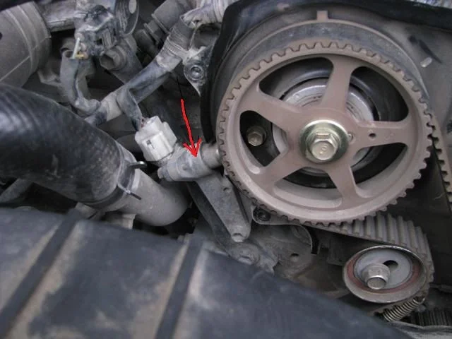 На двигателе 3sfe, датчик распредвала установлен здесь