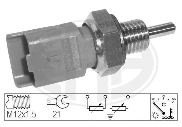 Где датчик температуры ОЖ в Пежо 206 1.6?