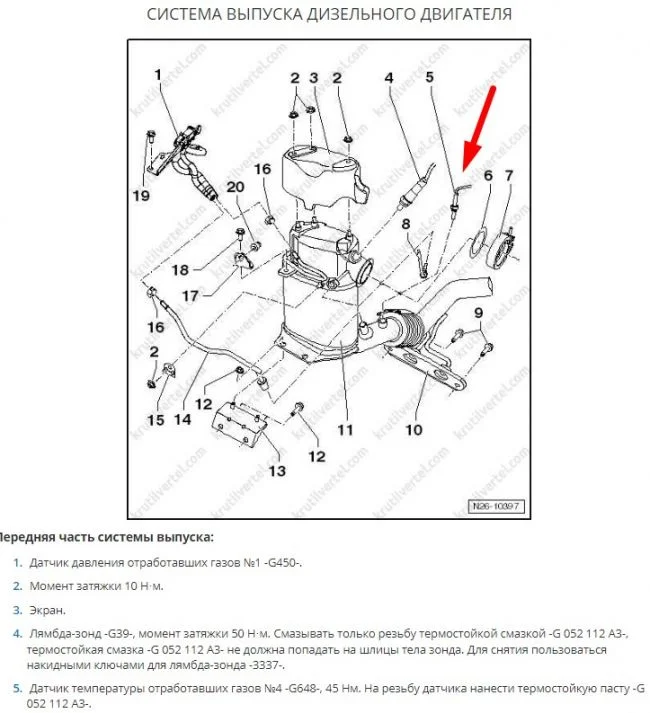 Где датчик температуры системы рециркуляции отработанных газов в Тигуане?