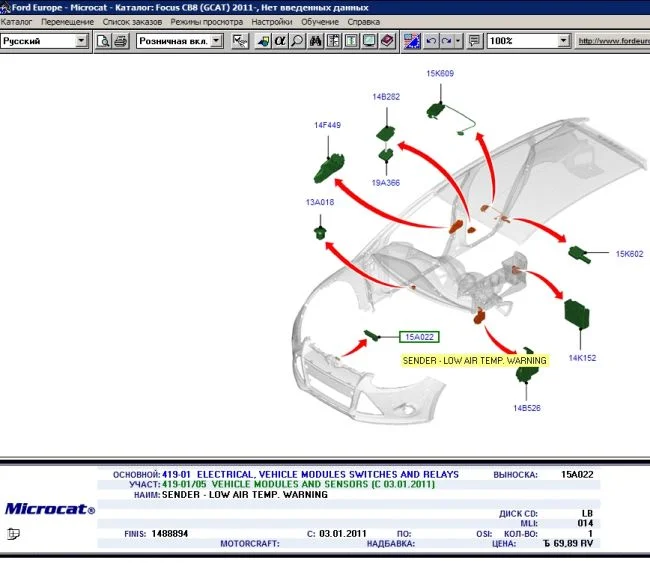 Где находится датчик температуры наружного воздуха в Форд Фокус 3?