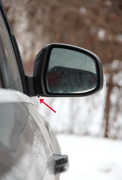Вот ваш датчик наружного воздуха спрятан под зеркалом.