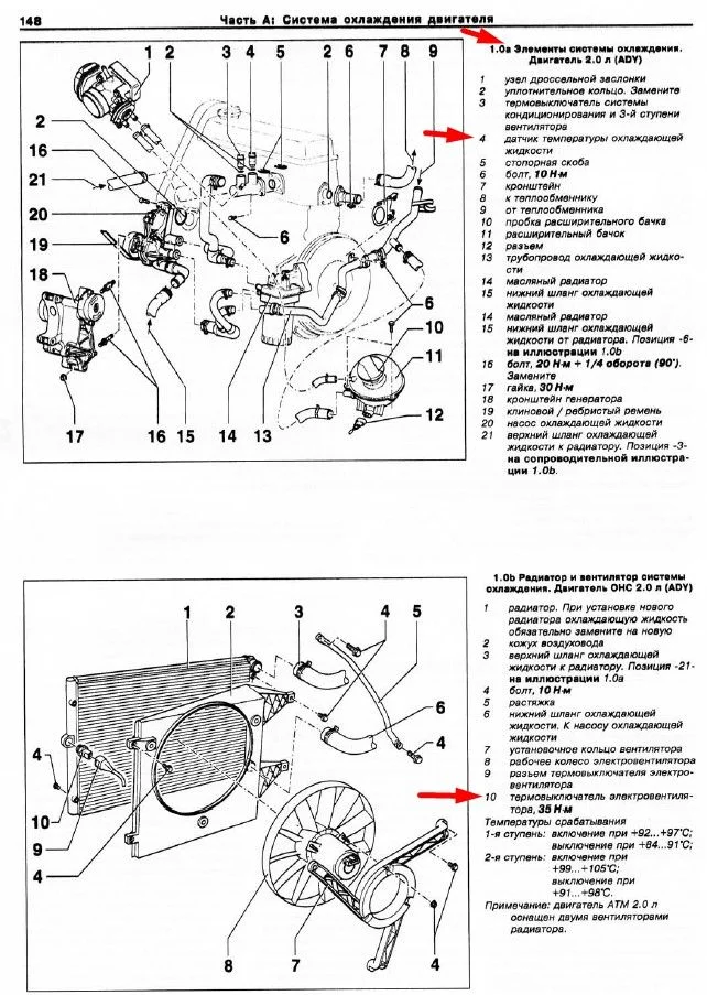 Подскажите пожалуйста, где находятся два датчика, которые отвечают за температуру охлаждающей жидкости?