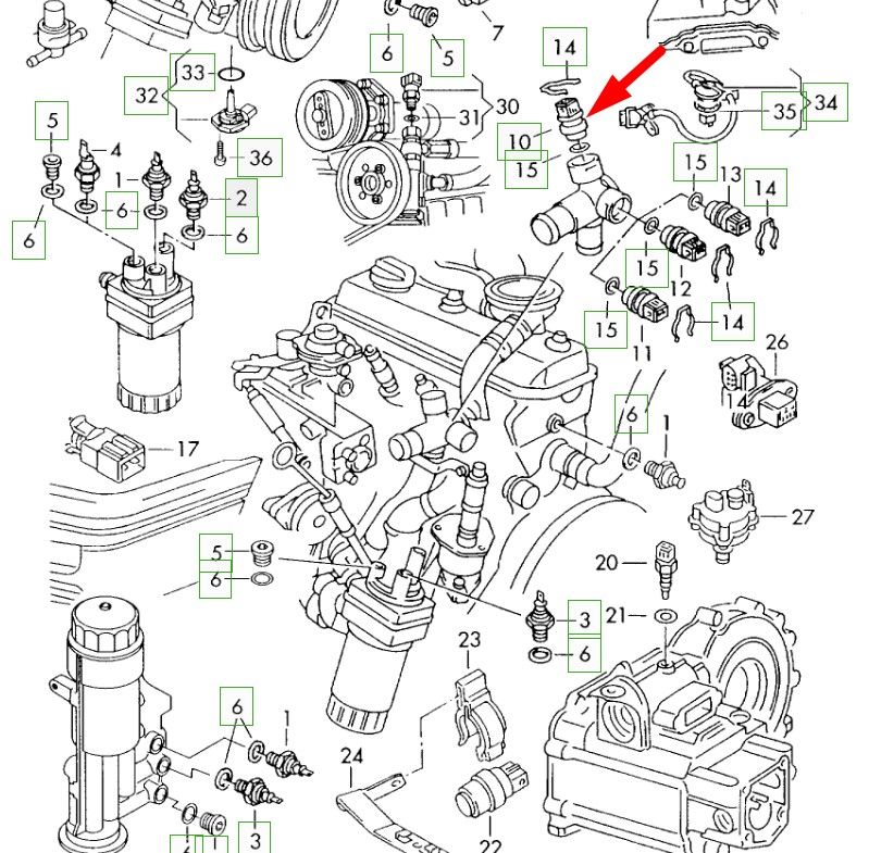 Какой номер на датчикe температуры Ауди А4 Б5 1.6?