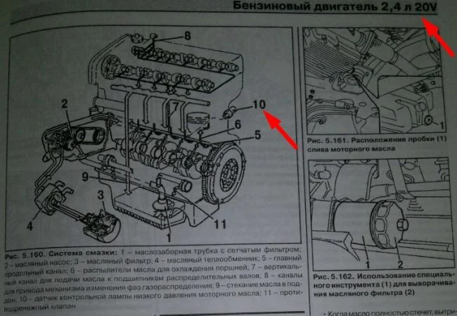 Вы не указали двигатель, вот выдержка из руководства по бензиновым двигателям, на схемах указано расположение датчика давления.
