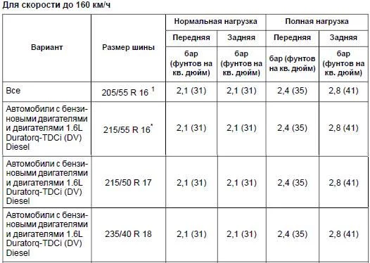 Какое давление в шинах Форд Фокус 3?
