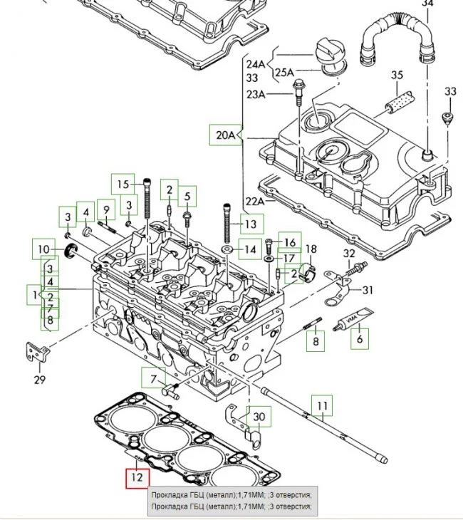 Прокладку ГБЦ выдает три вида, разной толщины (нужно проверить по точкам, какая стоит):