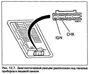 На вашем автомобиле должен диагностический разъем расположен в лицевой панели салона под панелью приборов