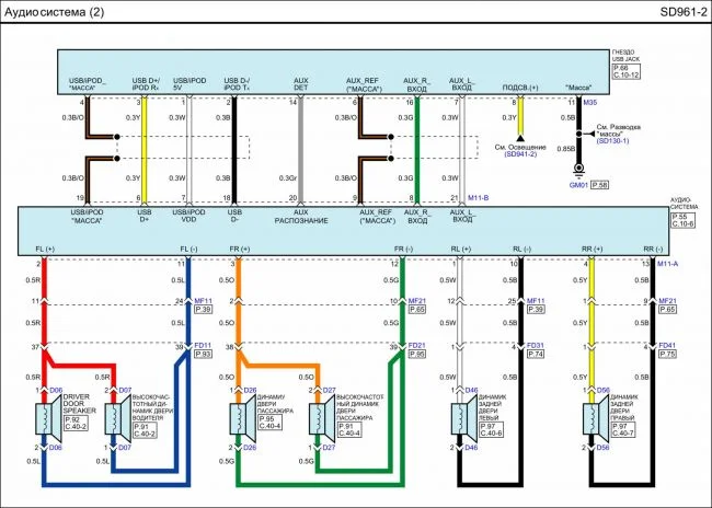 Какие цвета проводов плюс и минус идут на динамики передних и задних дверей Киа Рио IV 2017г?