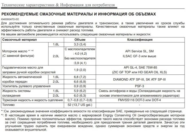 Здравствуйте! Подскажите пожалуйста какое количество жидкостей и ГСМ и какие нужно во все основные узлы и агрегаты данного авто?! Себе на Киа Соренто нашёл таблицу, на эту нет